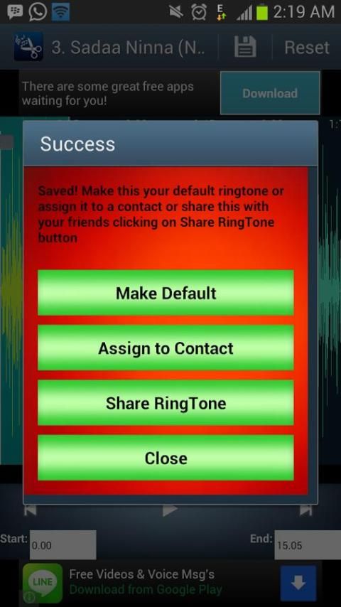 Its sebuah aplikasi di mana pengguna dapat memotong bagian yang diinginkan dari MP3 dan dapat menggunakannya sebagai ringtone default, pemberitahuan atau dapat mengatur nada dering untuk kontak. Juga menggunakan ini dapat mengedit sudah diedit berkas mp3 juga. Yang sangat banyak user friendly dan mudah digunakan.