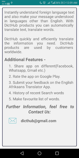 - English to Afrikaans and Afrikaans to English Translator app ideal for students, tourists to quickly translate