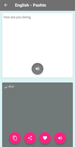 * App bekerja di kedua modus, Pashto untuk English Translator atau Inggris untuk Pashto Translator.