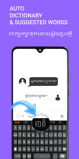 Khmer keyboard: Khmer Language Keyboard is best for android mobile keyboard for fast typing in Khmer Language. Khmer keyboard allows a user to write and type Khmer Message in Khmer language and Khmer text words. Khmer keyboard is lightweight and smooth typing Khmer English keyboard. Khmer Typing keyboard allows a user to typing message in Khmer language with Khmer sticker.
