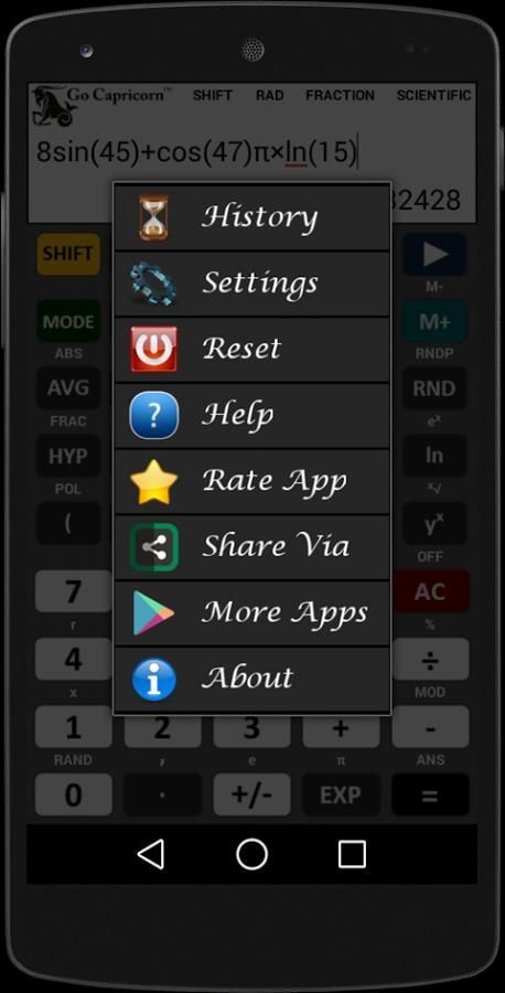 Scientific Calculator Gratis adalah aplikasi Scientific Calculator gratis setiap kali Anda perlu menggunakan Kalkulator kamu bisa menggunakan aplikasi ini untuk membuat ponsel Anda sebagai Scientific Calculator dengan penuh fitur bagus termasuk Konstanta (berhubungan dengan fisika, kimia dan matematika) dan dengan Unit Converter (mengkonversi nilai apapun ke dalam unit ada) dan dengan penuh bagus & HD Graphics. The Scientific Calculator memiliki dua modus Sederhana dan Ilmiah (Anda dapat menggunakan modus ilmiah jika Anda ingin mengevaluasi fungsi trigonometri atau ilmiah) dan memiliki begitu banyak pilihan, dan juga jika Anda ingin mendapatkan lebih banyak fungsi dan fitur maka Anda dapat membeli kami "Scientific Calculator Pro" versi.