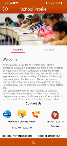 Our gO-mobilE (Parent & Staff App) & Web - Based (School Admin System) smart technology fully bridges the gap between the school administrative system, parents and teachers. The parent App automates various important tasks like attendance, reporting, events Information, students, results, complaints/feedback and many more, we succeeded in delivering an exhaustive system which rightly connects the parents/student with the school while keeping them informed.