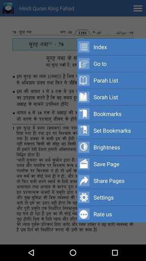 * Advanced navigation using Go to page number, Parah , Surah, Manzil and Sajda index helps to navigate easily.