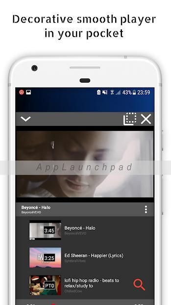 ✔️ YouTube music player: watch your videos in full screen or use the floating popup for