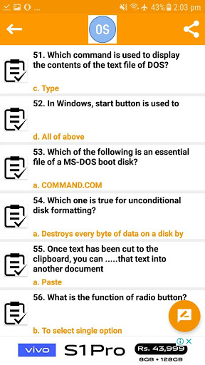 Here in this app you will study different topics in MCQs type. You will find different SETs of Quiz that will help you improve your knowledge about different Operating Systems.