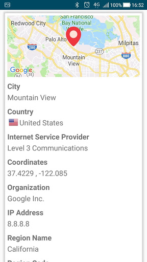 city, country, ISP (Internet Service Provider), coordinates, organization, region, zip etc.