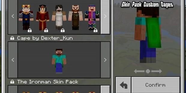 Skin Pack Kustom Capes mencakup satu kulit, tetapi tidak sederhana. Ini kulit dengan jubah. Ini tidak memberikan apapun kemampuan ekstra, tapi tampaknya tidak realistis keren. Fungsi ini tidak berlangsung lama, karena harus dibatasi hanya untuk pemain tertentu, jadi menikmatinya saat itu berlangsung. Setelah Anda download dan diimpor paket kulit ke dalam permainan, buka kolektor kulit dan pilih kulit dengan cape.