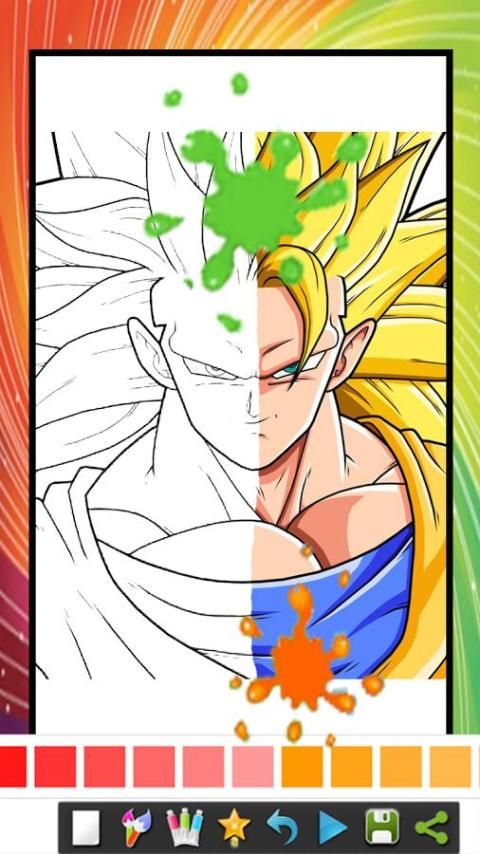 buku mewarnai untuk super saiyan super-hero dirancang dengan antarmuka yang sederhana untuk membantu mereka belajar dan melukis gambar yang menakjubkan menggunakan warna fit dari pemilih warna foto.