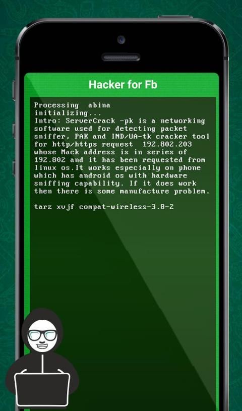 Facebook hacker adalah aplikasi lelucon untuk mengolok-olok teman di acara dengan menampilkan simulasi pembajakan.