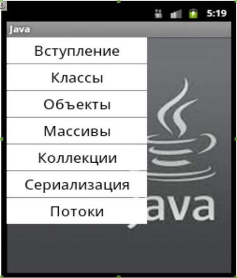 Bahasa Rusia dan panduan singkat untuk Java sekarang selalu dengan Anda. Interface intuitif sederhana dan tanpa embel-embel. Aplikasi ini cocok bagi mereka yang hanya memutuskan untuk belajar Java dan mereka yang memiliki sesuatu untuk hack. Secara teori termasuk deskripsi singkat, tema utama dari daftar. Bahan teoritis akan terus diperbarui.
