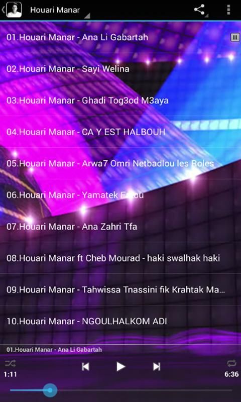 Aplikasi lagu-lagu Sheikh Houari Manar berisi lagu-lagu paling terkenal "Houari Manar" yang telah mencapai kesuksesan, dan bekerja lagu-lagu tanpa internet, serta dapat berbagi lagu dan aplikasi dengan teman-teman Anda.