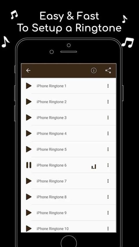 The iRingtones for android is best app for you. iRingtones for android is a collection of the best and most iphone ringtones for android phone. More than 50+ popular iphone ringtones and new iphone ringtones here. You can set them as your ringtone, message, alarm, notifications, or set ringtones.