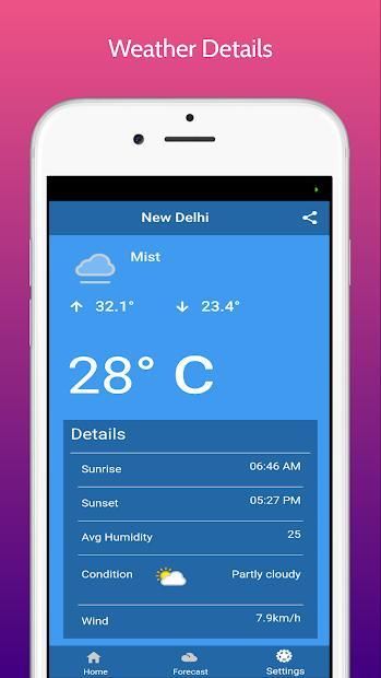 iWeather app is specifically designed for update about weather condition and forecast. With only one click you receive the weather condition, Sunrise & Sunset updates for same day. Also you can see same data for a complete week.