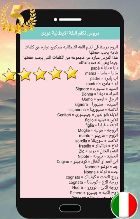 pelajaran bahasa Italia berbicara cepat dalam bahasa Arab, aplikasi bahasa Arab adalah bantuan yang sangat penting dalam belajar bahasa Italia dengan mudah dan dengan cara yang belum teruji.