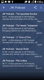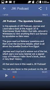 JW Podcast menyediakan campuran dari berita terbaru dan acara Saksi Yehuwa, sementara melihat lebih tua, ajaran-ajaran Menara Pengawal lucu, dan mewawancarai para tamu, semua dalam 45 menit, podcast dua mingguan.