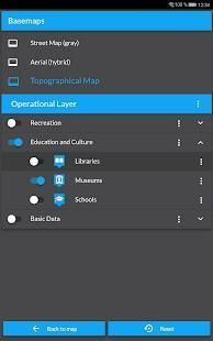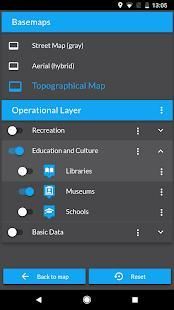 Pan, zoom dan memutar hanya dengan gerak tubuh, menunjukkan topik dan basemaps yang berbeda, mencari alamat dan menunjukkan lokasi Anda saat ini di peta.