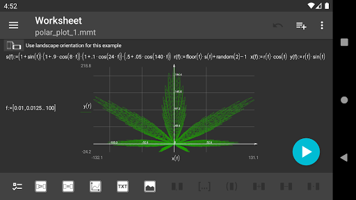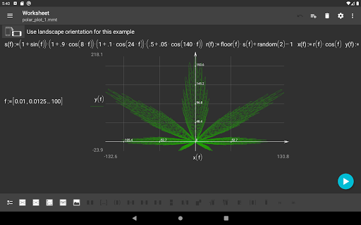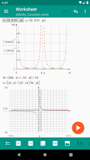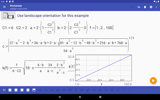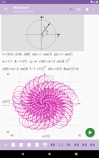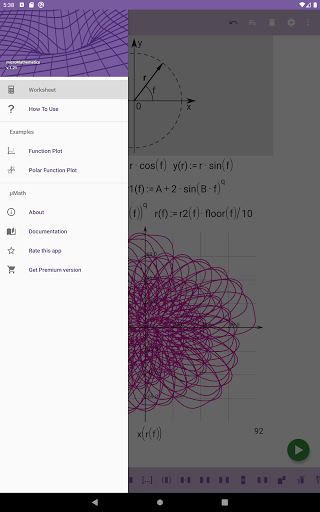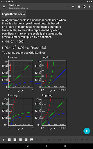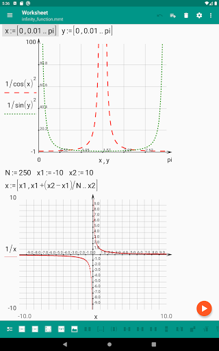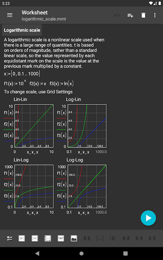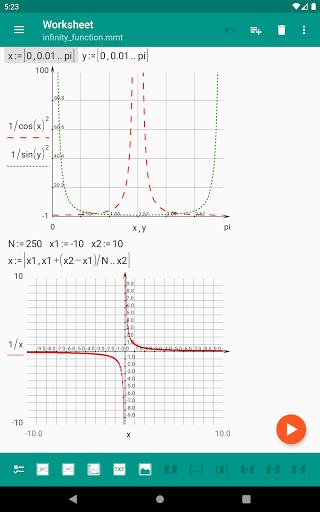 microMathematics is a revolutionary new kind of mobile calculator. It is the world’s first scientific graphing calculator and function plotter on Android oriented around a worksheet. It allows live editing of mathematical identities combined with highly accurate computations.