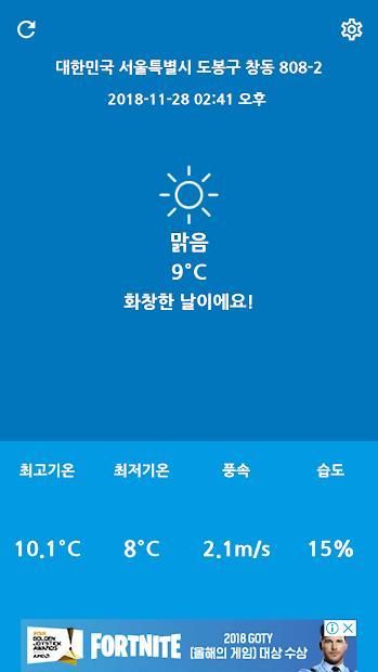 Do you believe? 20,000+ users downloaded 간편 날씨 (우리 동네 날씨, 내 위치 날씨, 간편 알림, 위치 기반, 날씨 정보) latest version on 9Apps for free every week! The world's most powerful app is here waiting for you. This hot app was released on 2018-12-01. Just use it when absolutely necessary.