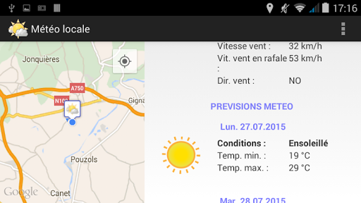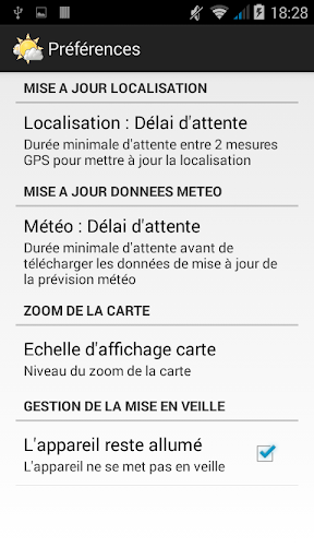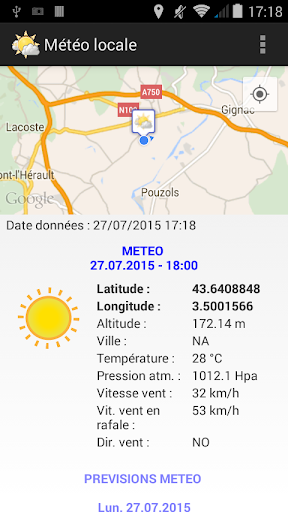 Posisi GPS ditentukan untuk memungkinkan aplikasi menampilkan data cuaca yang sesuai dengan posisi ini.Seiring waktu, posisi GPS dihitung ulang untuk memperbarui data cuaca dengan mempertimbangkan posisi baru.