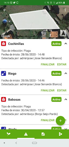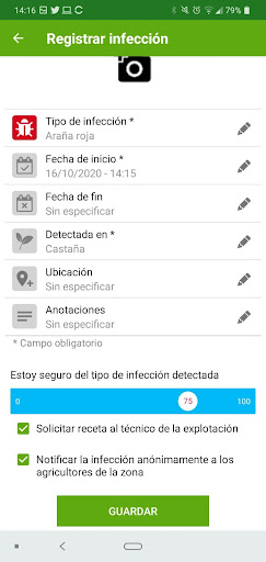 Osigris menawarkan geolokasi masing-masing dari plot pertanian atau ternak Anda, memberikan manajemen dan kontrol absolut atas insiden mereka.Selain itu, kami memiliki notebook lapangan yang sepenuhnya gratis untuk petani dan yang selesai sesuai dengan insiden yang ditandai pada eksploitasi Anda. Situs Setelah geolokasi eksploitasi Anda telah dilakukan, platform Osigris akan memungkinkan Anda untuk merekam insiden itu. Anda menemukan atau menuliskan pekerjaan yang Anda lakukan tentang itu.Osigris memfasilitasi kontrol dan pengelolaan hama, penyakit, perawatan fitosanitasi, penerapan pupuk, negara fenologis, pekerjaan dan produksi tanaman Anda, serta catatan penggembalaan ternak.
