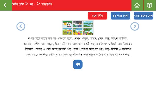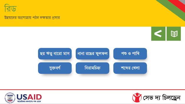 Bangla reading skill is essential not only for Bangla subject, but also for other subjects. Unfortunately, primary level students are weak at Bangla reading, though Bangla is their mother tongue. Unavailability of appropriate and effective learning materials is one of the major reasons behind this. Through READ project, Save the Children is working to improve the Bangla reading skill of early grade students. As a part of the project, this app has been developed based on the Bangla textbook of grade II. There are six subject matters; Six Seasons and Twelve Months, Flowers and Fruits of Different Colors, Animals and Birds, Conjuncts, Punctuations, and Word Game. Each contents has been presented according to the method followed in the textbooks. From pedagogical perspective, the app is completely appropriate for the students of grade II. In addition, the app will help the learners to achieve the gradable competencies. Standard pronunciation has been added in each content of this app. There are lot of games in the app, which help students exercise their learning and, of course, are very enjoyable. Children can run the contents and play games themselves without the help from others. This app is completely free.