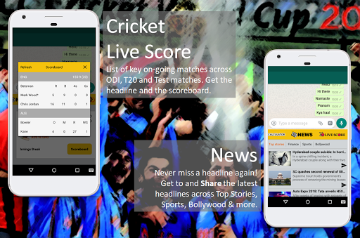 Never miss an ODI, IPL, Ranji Trophy or Test match ever again. See the scoreboard and share the score with your friends or enemies :P.
