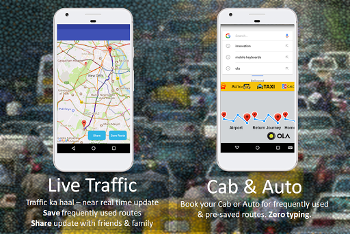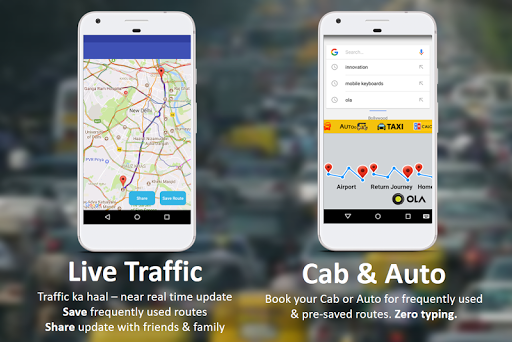 Traffic Jam se bache. Get Live Traffic update & time to reach. Save the frequently used ones for reuse, and Share the traffic update with your friend, family or god forbid your boss.
