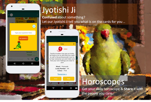 Ask Jyotishi Ji a question, and the Parrot will tell you what the stars have in store for you. Share the forecast.