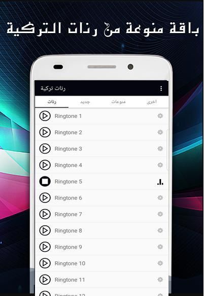حمل التطبيق واستمتع بالاستماع جديد الرنات التركية الرائعة و المشهورة كما يمكنك اختيار اي رنة من رنات هذا التطبيق كرنة لهاتفك او رنة للرسائل وايضا كرنة للمنبه.