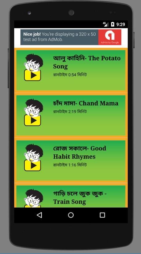 Juga belajar lagu alfabet, lagu, Bengali, koleksi lagu-lagu anak-anak populer dan menyebar penyebaran non-jam dan A h bisa belajar Bengali. Kami secara teratur mengumpulkan dipilih sajak anak-anak baru dan lagu-lagu dan video di-upload. Aplikasi ini dapat dikirimkan ke hiburan yang sehat anak Anda.