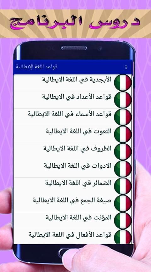 Selain itu program ini termasuk belajar bahasa Italia untuk pemula pada banyak pelajaran melalui terjemahan bahasa Arab Italia tanpa internet, yang membuat Anda mampu memahami pesat ini bahasa keadaan bagi mereka yang Abhton pada aplikasi menggunakan frase yang berbeda, mereka dapat melalui penggunaan kata-kata yang di bawahnya: Pendidikan Belajar Italian Arabic , terjemahan Italian Arabic, program pendidikan untuk anak-anak