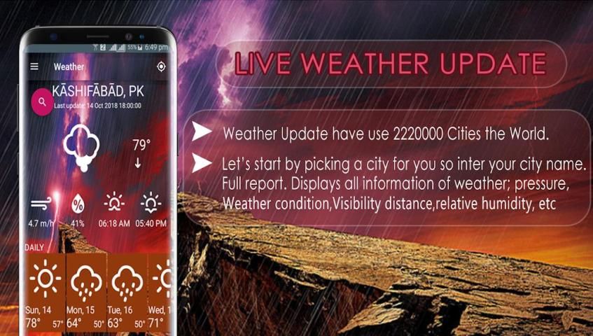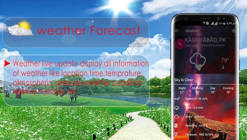 Weather live updates weather forecast is android base application have an amazing feature to find weather and best weather forecast app. Now a day’s live update app is so helpful for every person. If someone find the live update information then he/she can prepare his/her plan easily and carefully. With live weather update apps you can find every hours correct information. If someone goes for a long tower and they don’t kwon about the weather jut download weather apps and update all information about the location that you want to go. The latest weather update is so easy and gives correct weather information. The weather updates app have you can find wind speed means how much speed of wind in the weather forecast. They have also informed you about the humidity, sunrise information and sunset information. The latest weather update has also about the sky information they are clear or cloud. latest weather conditions are also informing you about the weather in centigrade and also in Fahrenheit. In the weather enquiry app have also weather forecast graphs that you can find weather information easily. You can find correctly your current location also. If you want notification in the weather update app have also include. In the search you can just enter the correct location the weather update will give you accurate result. They have also daily base record you can find it smartly.