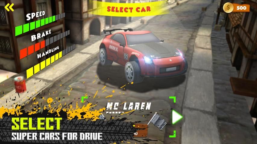 - Thrilling off-road environment with curved tracks to drive buggy cars.