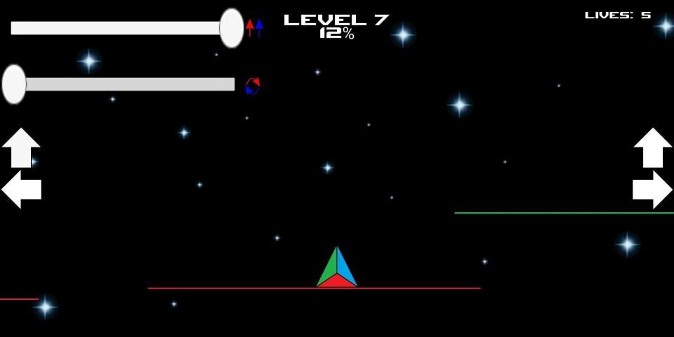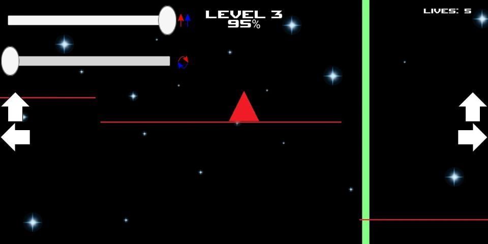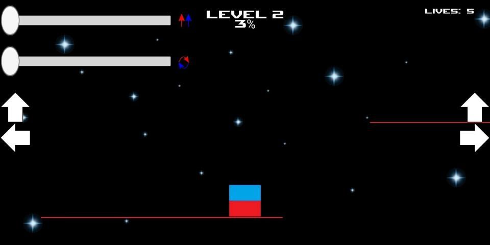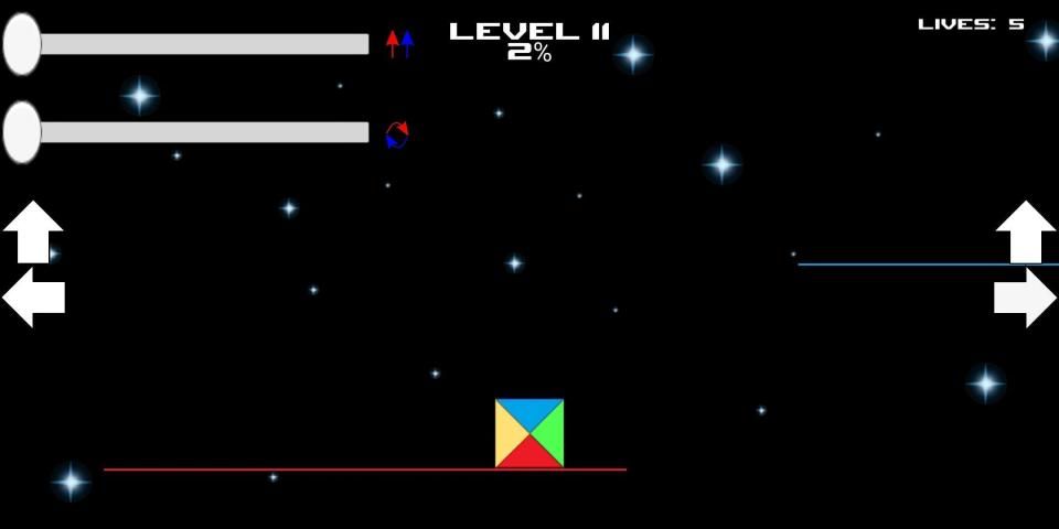 Use the gravity and rotation bars to calculate your jumps! Be careful, do not fall with the wrong color on the platforms or you will go to he beginning of the level!
