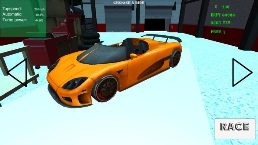 Memenangkan uang ras dan menggunakan uang Anda untuk meng-upgrade mobil Anda untuk membuatnya lebih cepat dan memenangkan lebih banyak.