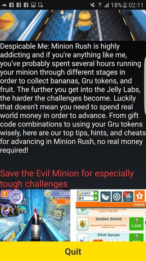 Minion Rush Panduan adalah mudah untuk dibaca aplikasi yang akan mengajarkan Anda lebih banyak tentang permainan DespicableMe