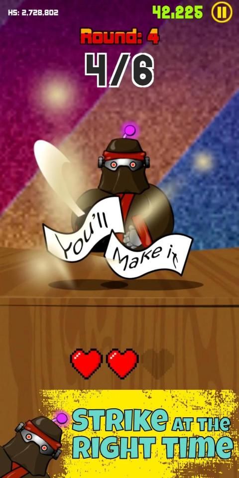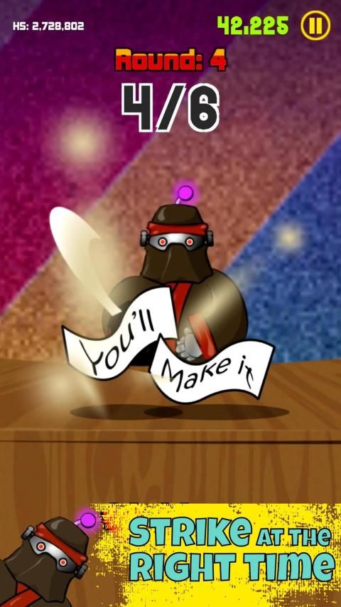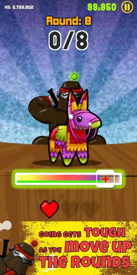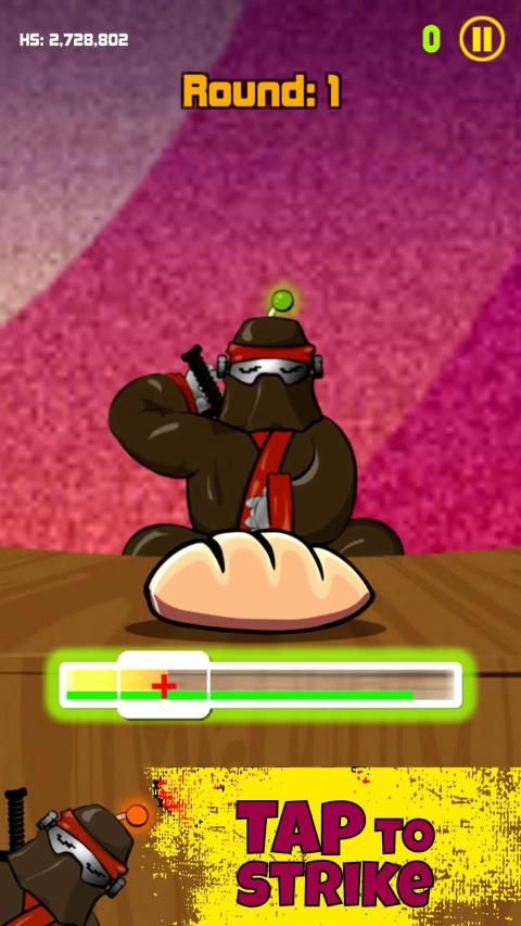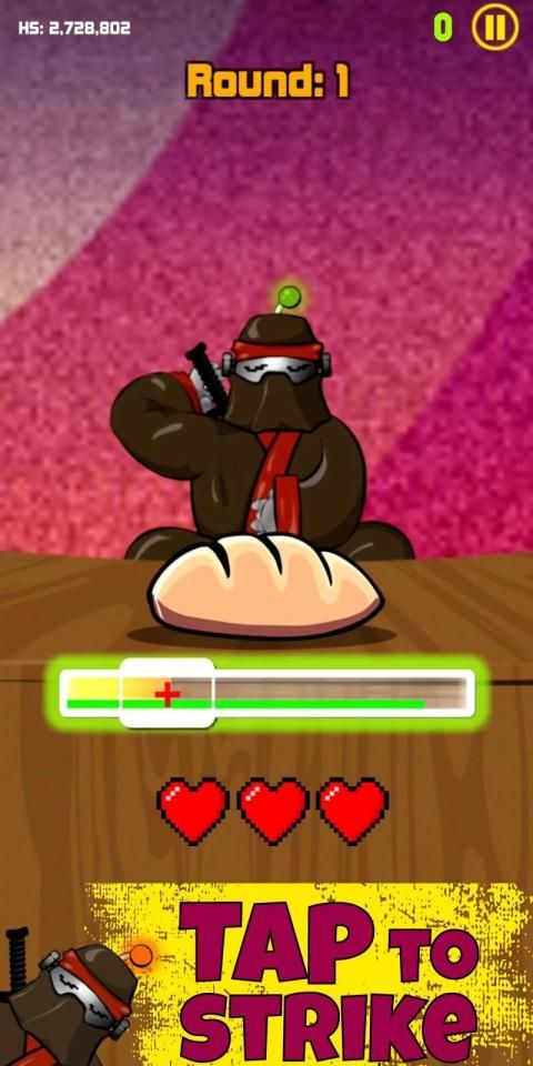 Help him slice things to perfection. Tap to strike. Focus and timing is everything, the strike must be when the moment is perfect and the force is on the right zone. Hours of fun slicing away.