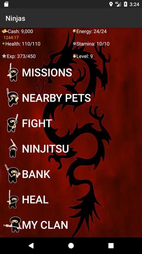 Menjadi Ninja dan mengeksplorasi lingkungan Anda mencari uang dan pengalaman! Mendapatkan uang untuk misi, melawan ninja lain dan mencari hewan peliharaan berdasarkan lokasi Anda dalam kehidupan nyata untuk mendapatkan uang dan pengalaman!