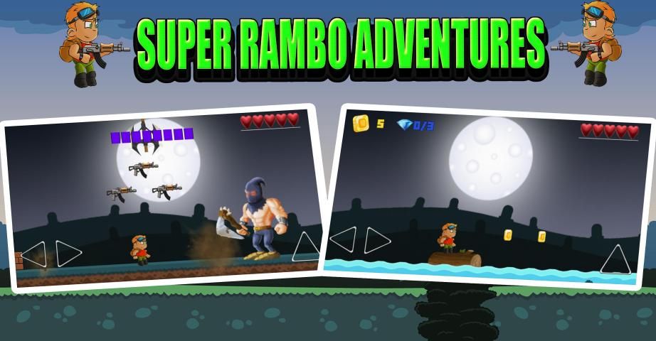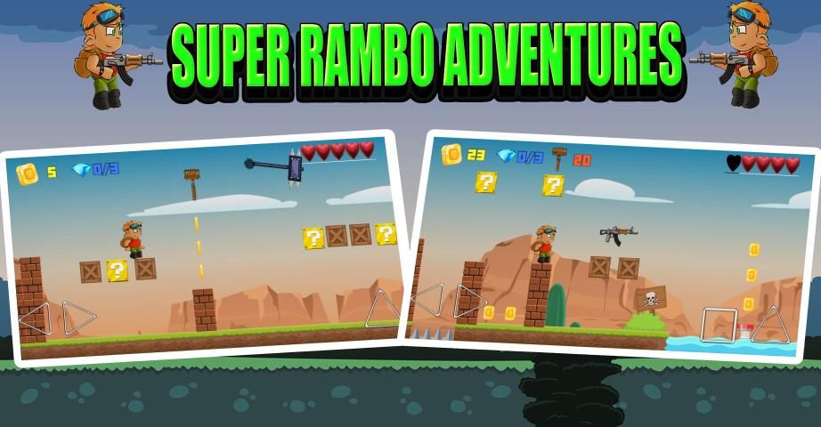 Sekarang nikmati dan nikmati game Super Rambo Adventures, petualangan desain Super Rambo canggih dan game yang sangat khas berisi: