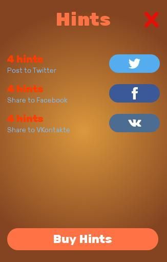 - Dengan setiap tingkat berlalu, 2 petunjuk yang diperoleh.