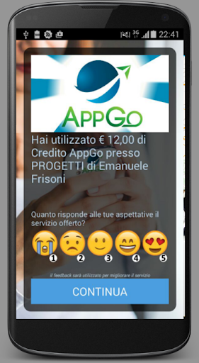 AppGo è una applicazione ti consente di maturare Crediti da spendere incondizionatamente nei migliori esercizi e attività commerciali sul territorio. Iscrivendosi ad AppGo si inizia da subito a collezionare Crediti. Scopri quali imprese sono affiliate al programma di fidelizzazione AppGo su www.appgo.it e su applicazione AppGo e scopri quali prodotti siano in offerta.