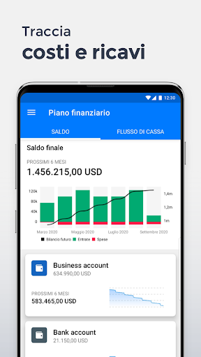 • Pianifica il tuo flusso di cassa, inclusi i ricavi, i costi ricorrenti o gli investimenti una tantum