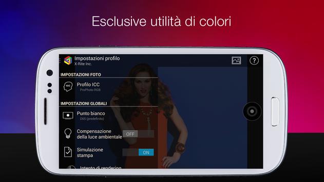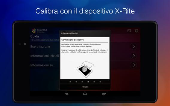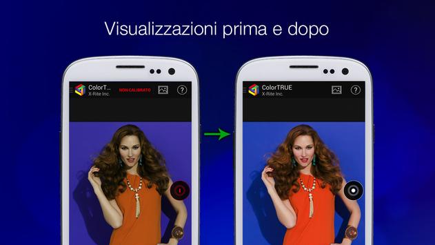 A differenza del sistema operativo di un computer portatile o desktop, le applicazioni mobili Android non hanno risorse di sistema per la gestione dei colori. Pertanto, ogni applicazione deve applicare i profili di colore singolarmente. Per questo motivo, X-Rite ha creato il Programma per i Partner ColorTRUE Aware. Attualmente, stiamo collaborando con altri sviluppatori di applicazioni per consentire ai loro di accedere al tuo profilo ColorTRUE in maniera integrata in modo che tutte le applicazioni siano in grado di visualizzare i colori con precisione e uniformità. Le applicazioni ColorTRUE Aware saranno gestite in termini dei colori dopo la creazione di un profilo con ColorTRUE. Basta cercare il logo ColorTRUE Aware per compatibilità.