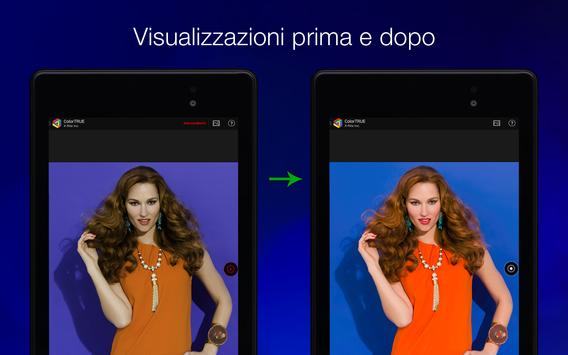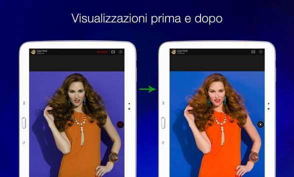 Per i perfezionisti dei colori, professionisti, dilettanti, indifferenziatamente, ColorTRUE fornisce una precisione cromatica senza rivali sullo schermo del dispositivo mobile ed è incredibilmente facile e veloce da usare. Una volta che si colloca un dispositivo di calibrazione X-Rite compatibile sullo schermo, ColorTRUE inizia la sua vera magia fornendo un profilo personalizzato in pochi minuti! Inoltre, ColorTRUE è dotato di uno straordinario visualizzatore di immagini in modo da poter mostrare le tue foto con fiducia, sapendo che i colori di loro sono esatti.