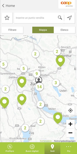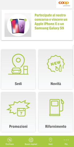 Con l’app Coop Pronto trovate tutte le informazioni sui Coop Pronto con o senza stazione di servizio. Approfittate di numerosi vantaggi e non vi perdete nessuna offerta.