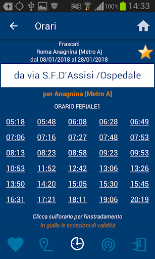 - Orari: consulta gli orari aggiornati di tutte le corse e aggiungi la tua ricerca ai preferiti per consultare i tuoi orari più velocemente.