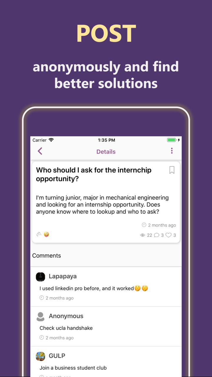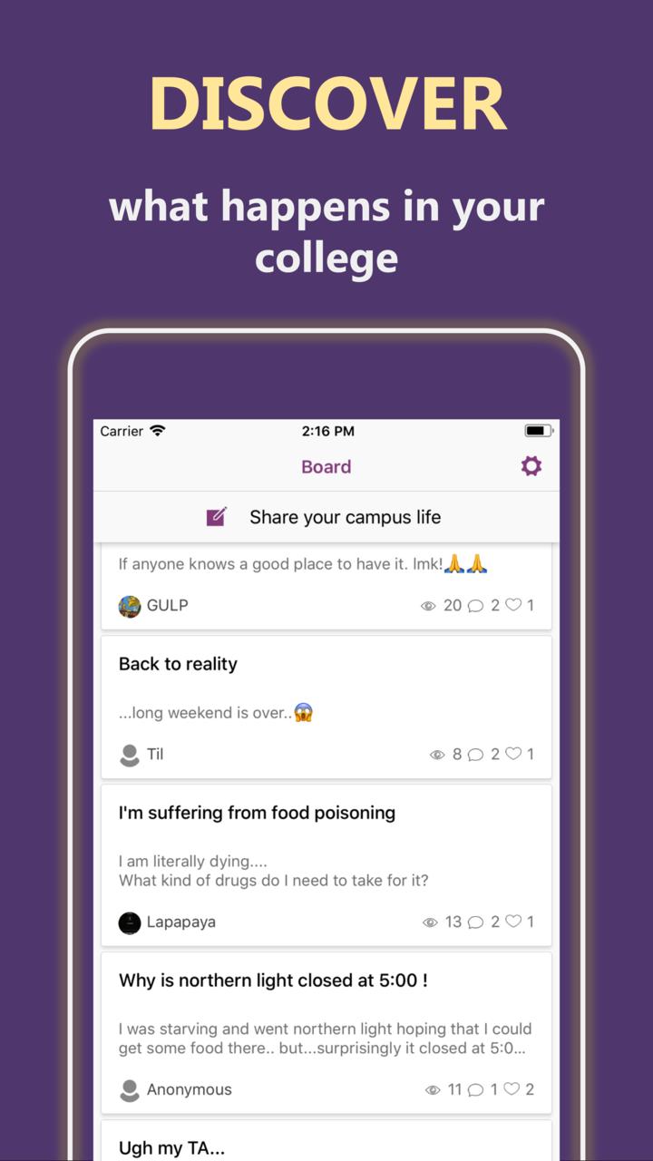 You can post anything about your college life anonymously. Get connected with other students by sharing meaningful conversations.