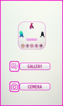 snap photo with camera or select photo from gallery to start Photo Editing. This "Emoji Trolls Face Camera" app