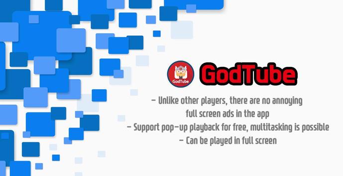 - GodTube is a floating pop-up player application, all the content is provided by YouTube services. Thus, it does not have direct control over the content displayed.