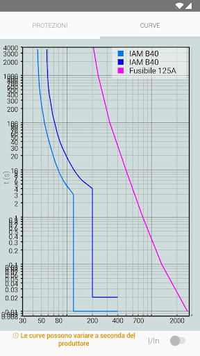- Rappresentazione delle curve delle protezioni